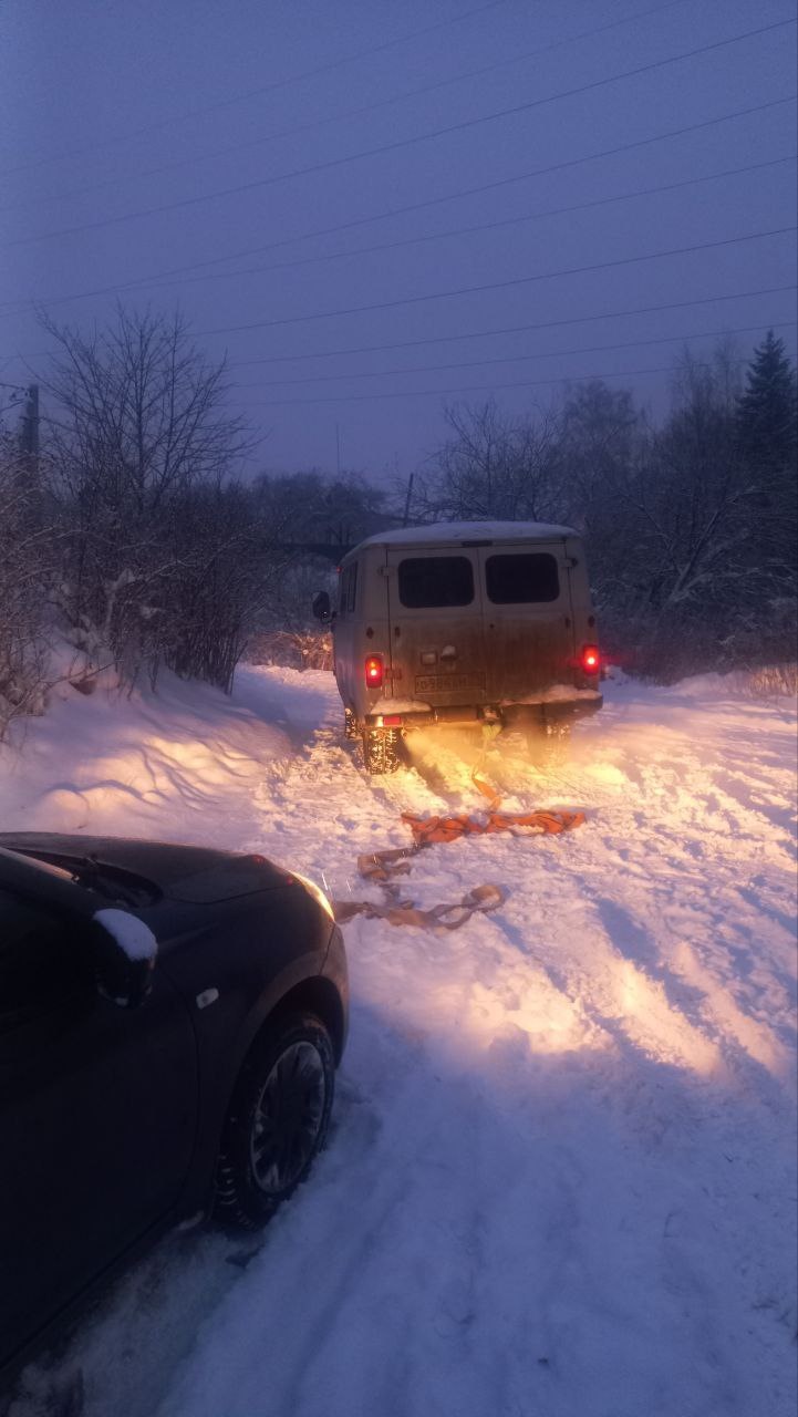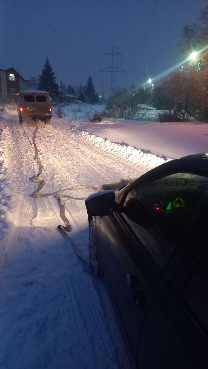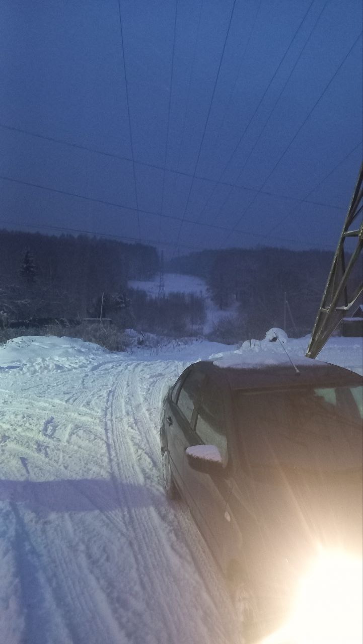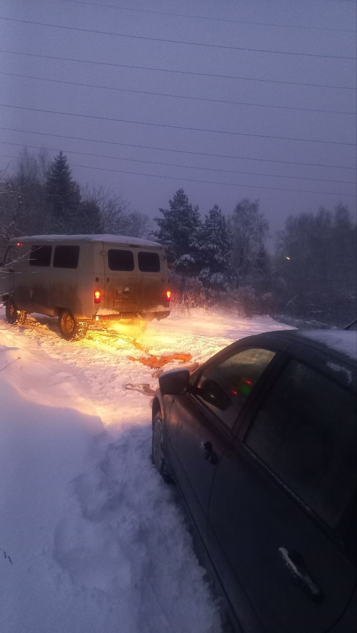 Водитель на Ладе Гранта в пургу заехал в низину и выбраться оттуда не было у него никакой возможности.