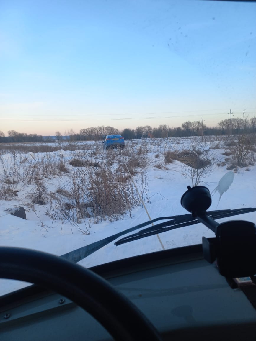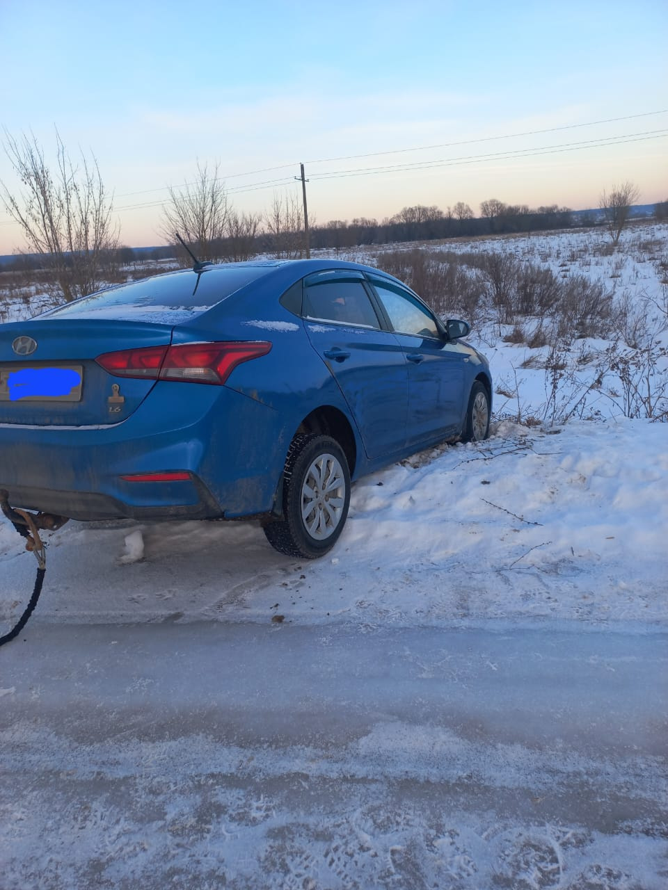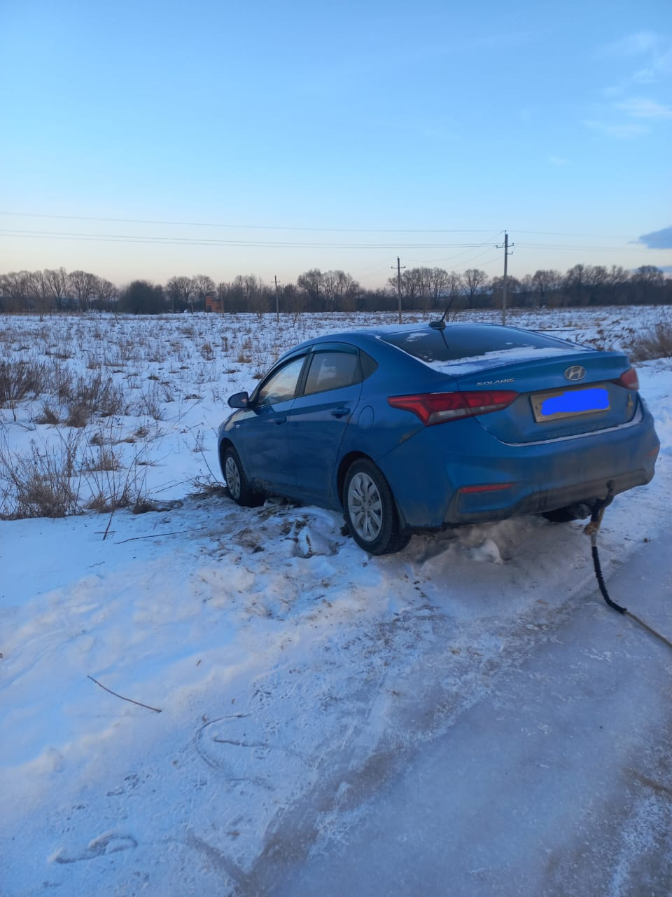 Водителя занесло на скользкой дороге в Тульской области. Hyundai сел на днище, едва не улетев в кювет. Вытащил машину бережно и аккуратно с помощью лебедки.